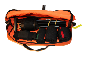 Sistem de curele reglabile care asigură stabilitatea segmentului afectat și poziționarea optimă, reducând mișcările nedorite în timpul transportului.