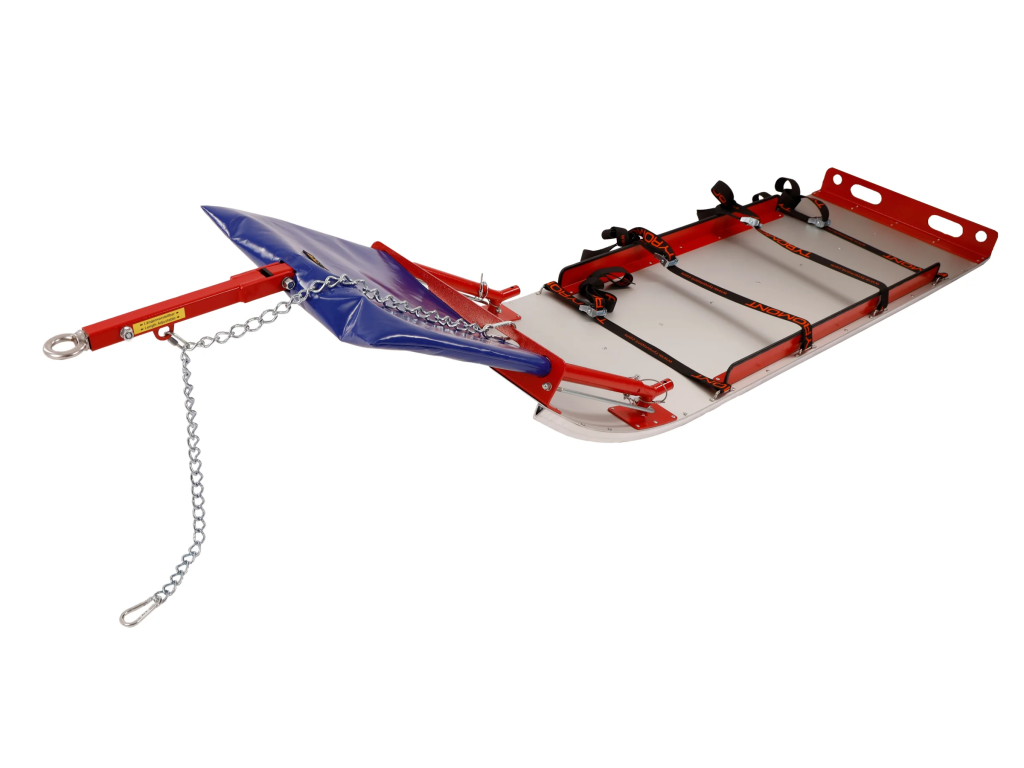 Carlig de remorcare compact și sigur, conceput pentru atașarea directă a unei targi de salvare tip Canadiana pentru remorcare de un snowmobil sau ATV