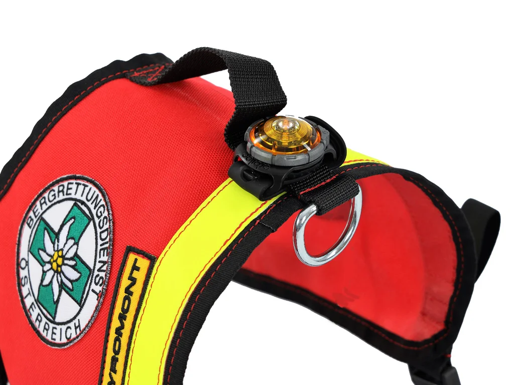 Lampa LED Orbiloc este concepută pentru a oferi vizibilitate excelentă și siguranță sporită în condiții de întuneric. Cu o rază de iluminare de 270°, aceasta îți protejează și face câinele vizibil de la distanță mare — ideal pentru activități de lucru, căutare sau plimbări nocturne.