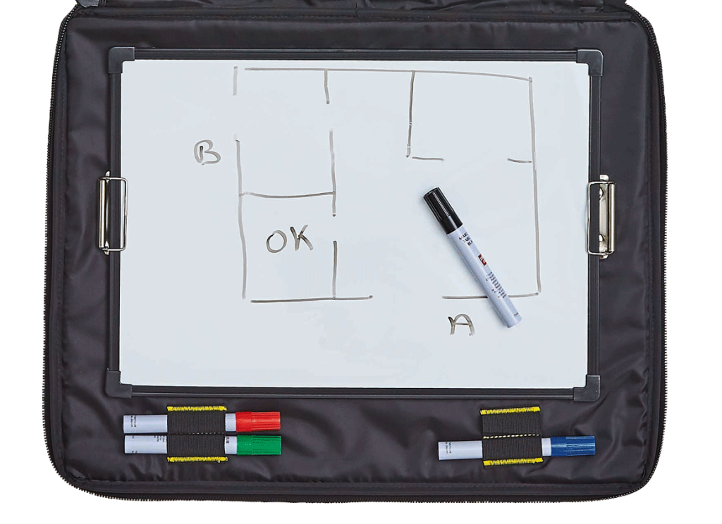 Un al doilea tablou, magnetic, de culoare albă, destinat notițelor și diagramelor realizate cu marker sau aplicării etichetelor magnetice.