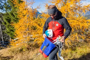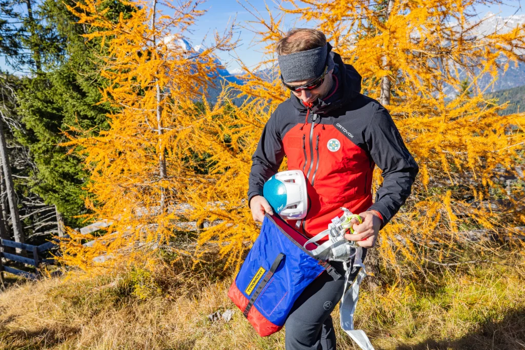 Sac de depozitare si transport pentru casca de rezervă pentru persoana accidentata si a unui ham de salvare.