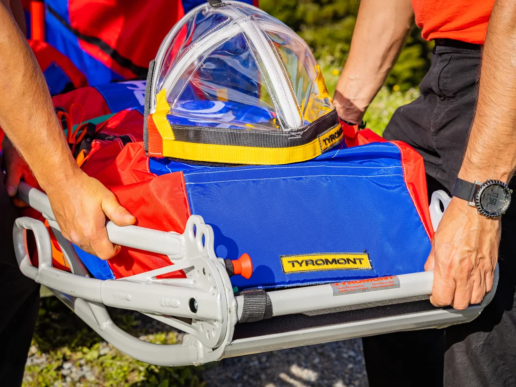 Sacul de salvare si protecție TYRAL acoperă complet accidentatul, inclusiv cand se afla pe o saltea vidată, asigurandu-i confortul si protectia termica necesara pe perioada transportului.