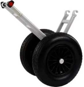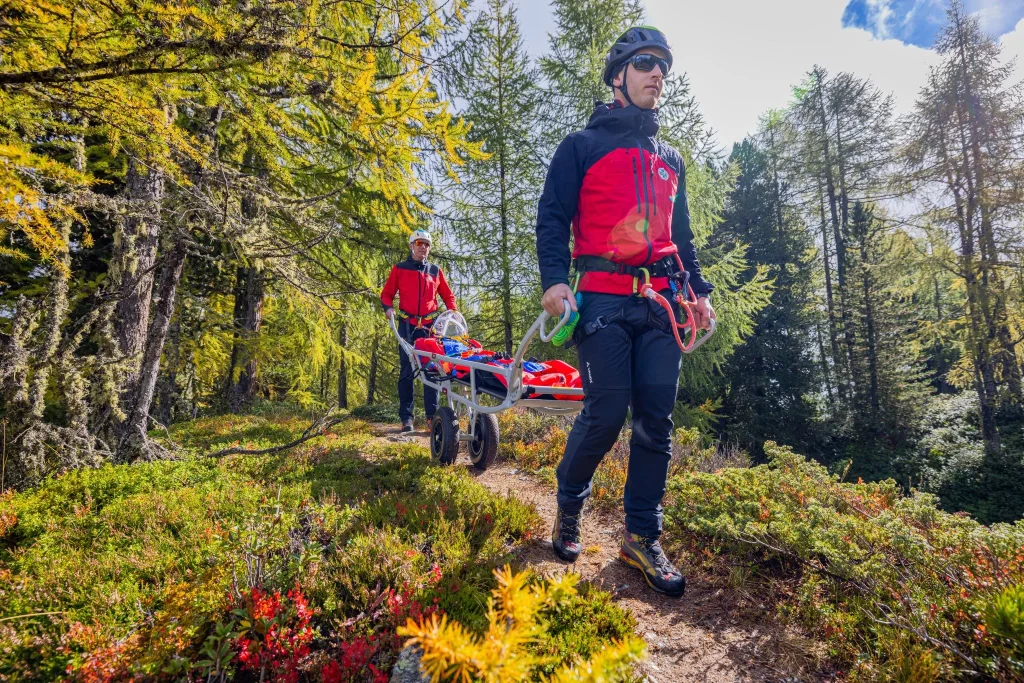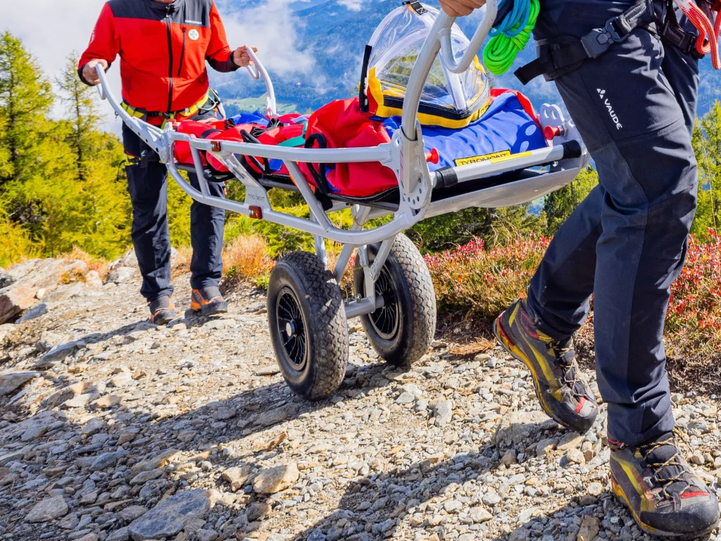 Sistemul de roata dublă pentru targa de munte Tyral este o soluție robustă și fiabilă, special concepută pentru utilizare versatilă de catre salvatorii montani. Suportul roții este atașat la targă cu două știfturi cu bilă, permițând o instalare rapidă și sigură.