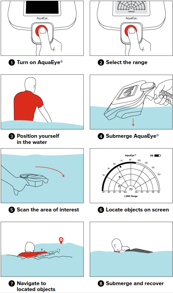 AquaEye Pro este un sistem sonar activ portabil pentru detectarea corpurilor aflate sub apa, conceput pentru a ajuta primii respondenți să găsească victimele înecării în timp foarte scurt de la sosirea la fața locului. Având sute de actiuni de cautare – salvare AquaEye a dovedit că reduce timpii de cautare cu până la 90%.
