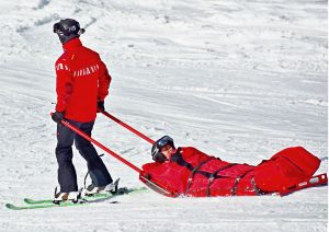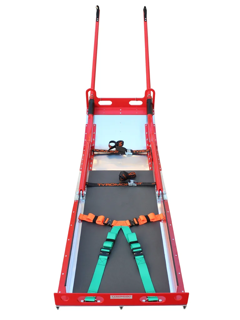 Fixarea persoanei accidentate se face cu un sistem nou dezvoltat de centuri în 4 puncte cu catarame COBRA (pentru partea superioară a corpului) și două centuri transversale cu catarame din aluminiu; rezistente la rupere și îngheț, ușor de utilizat chiar și cu mănuși de schi.